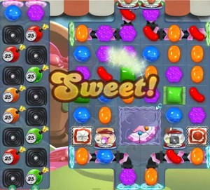 Clear candies at the bottom left of the playing field