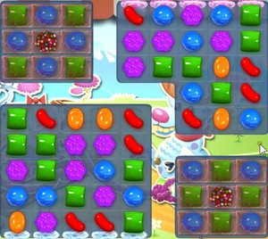 Candy Crush Level 1077 is among the levels with a unique board design. It is divided into four parts that are irregular in shape and size. The main goal of this level is to reach get at least 50,000 points in 40 moves or fewer and have collected 80 green, 80 blue and 4 color bombs candies. However, it may be difficult to achieve your goal due to the presence of marmalades in the upper left and bottom right parts. Some of the color bombs are locked by the marmalades and hence the need to clear it. In every move, focus on clearing any obstacle you see on the playing board. Match candies in other parts of the playing field to form color bombs so that they detonate clearing the marmalades.Level 1077 Cheat #2: Focus on creating color bombs