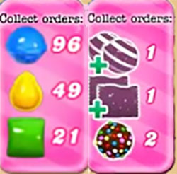 - If you need to collect special candies, focus on forming them right away. Don't bother making any special candies that don't fill your orders. If you need to make wrapped bombs, don't waste turns by making striped candies.