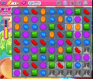 - Jelly squares at the top of the board and at the corners can be tricky, since these are the hardest spot to match candies. Watch out for these, and try to clear the board first.