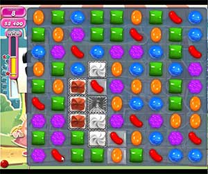 - Jelly squares at the top of the board and at the corners can be tricky, since these are the hardest spot to match candies. Watch out for these, and try to clear the board first.